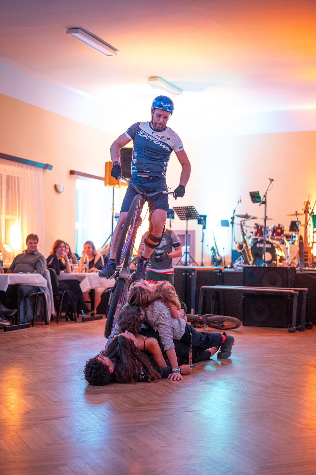 Po delší době vyrazil Vlasta a Lukáš za Vláďou Keblůžkem do Lipové u Chebu, kde se konal obecní ples. Kromě vystoupení tanečníků ze Stardance bylo i půlnoční překvapení pod taktovkou Trialshow týmu. Super divácká atmosféra a pár herců se sebevražednými sklony v roli dobrovolníků nám hodně pomohli. Diváci šli po hlavě i do soutěže a díky super povrchu a vysokému stropu se podařilo ukázat dost prvků. Díky za pozvání a snad zas někdy příště.