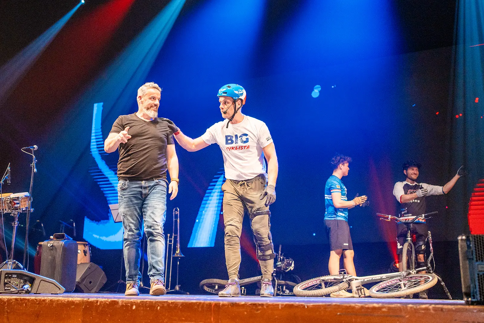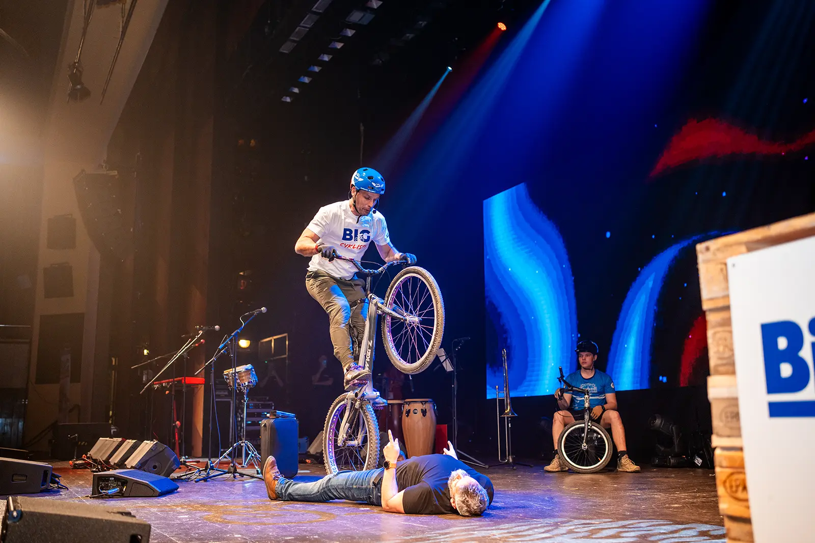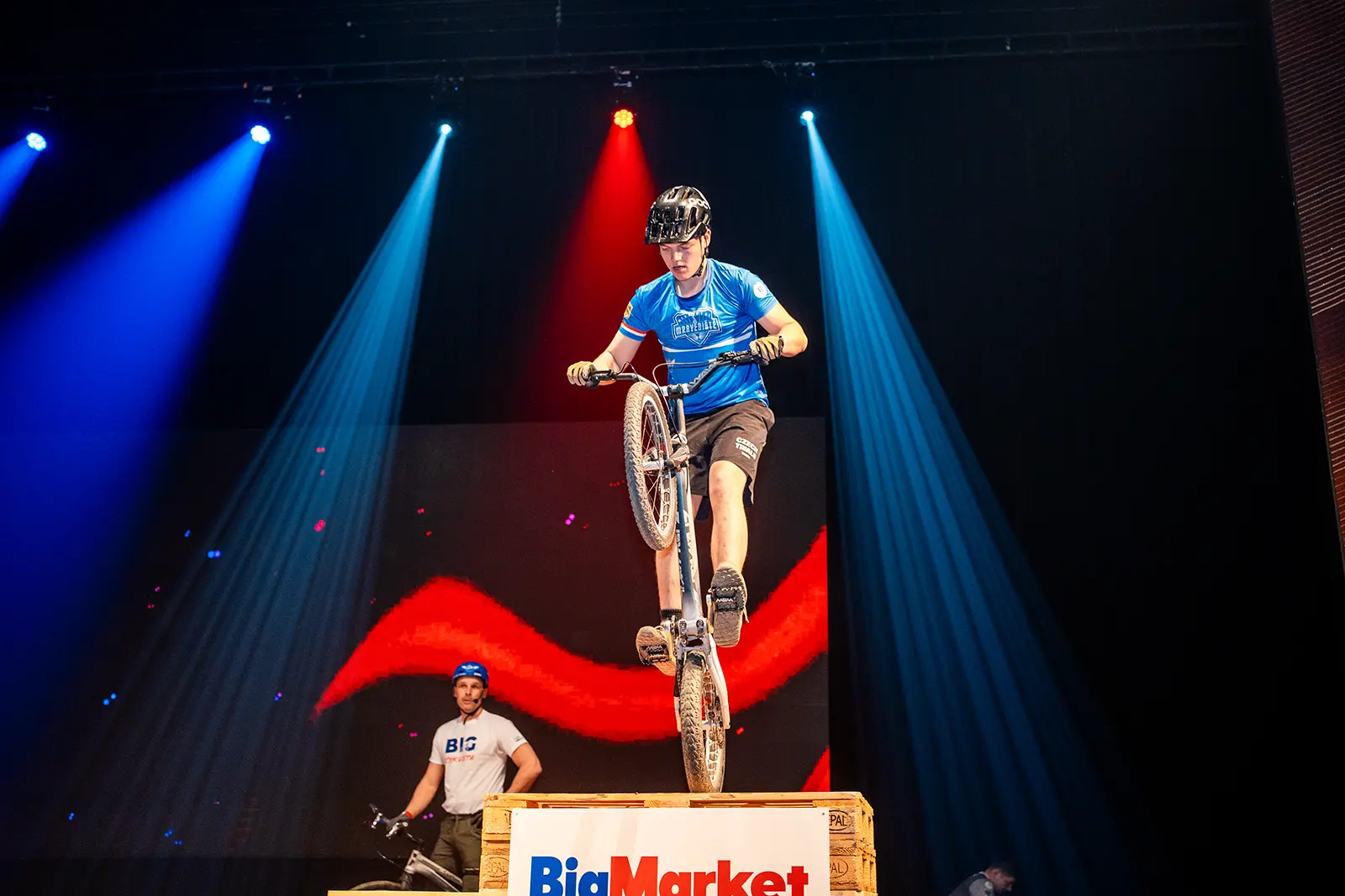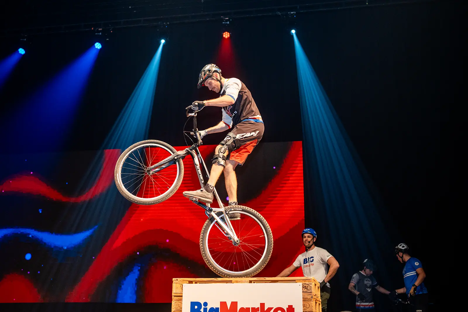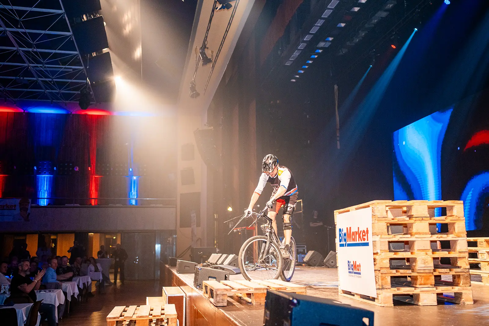 Byli jsme pozváni na expo jednoho z velkých podporovatelů UCI světových pohárů společnosti BIGMAT, která chtěla svým zaměstnancům a partnerům, ukázat trochu cyklistiky. Volba padla na náš tým za což děkujeme. Trochu časový pres nás nerozházel, vešli jsme se i do prostoru a nezničili žádné z drahých laserů a LED obrazovek. Tentokrát jsme nevyužili naše tradiční překážky, ale stylově jsme jezdili po klasických paletách a Vlasta na sebe hodil i BigMat tričko. Sekundovali mu Marek Tryner v jeho první exhibici po úrazu kolene. Tobík Dolák, který nakonec skončil jako dobrovolník a Lukáš Valný, který si poprvné v životě užil technického problému během exhibice, kdy mu praskl řetěz snad po prvních 3 skocích na úplně novém kole. Ne moc dobrá vizitka pro tuhle řadu X9.